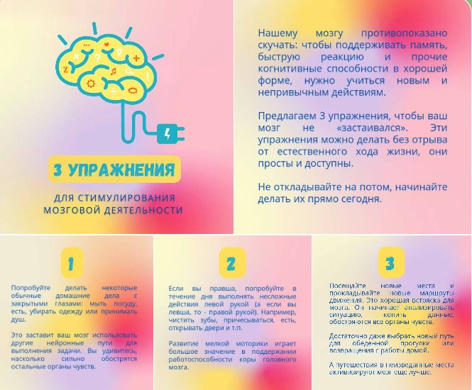 Добавьте к своим ежедневным делам утреннюю или вечернюю зарядку, чаще гуляйте, ходите пешком по лестнице и т.д. Быть физически активным не так сложно, как может показаться.